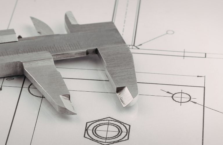 Close Up of CAD Blueprint with Measuring Device